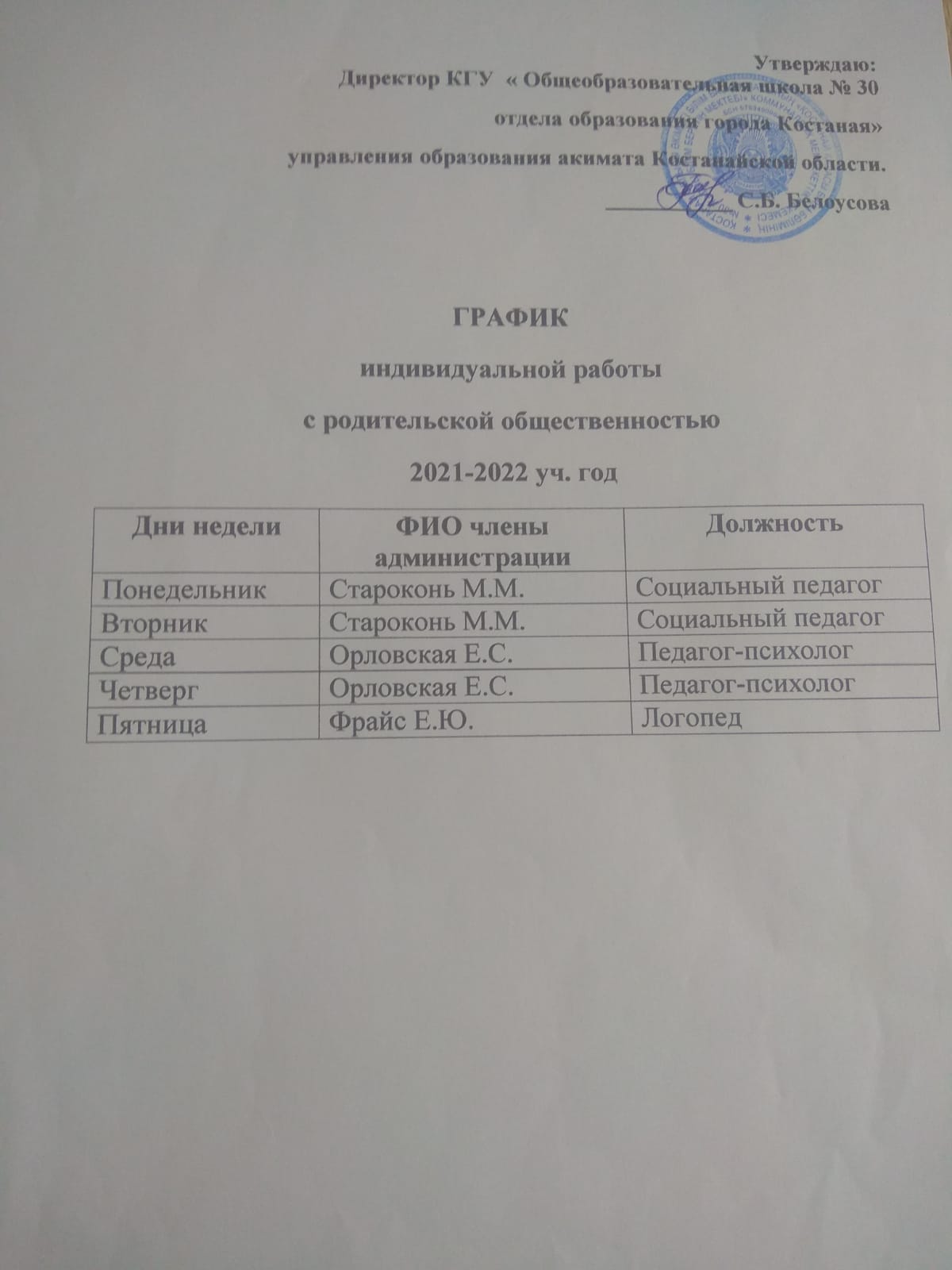 | 7 | График индивидуальной работы с родительской общественностью 1 | |