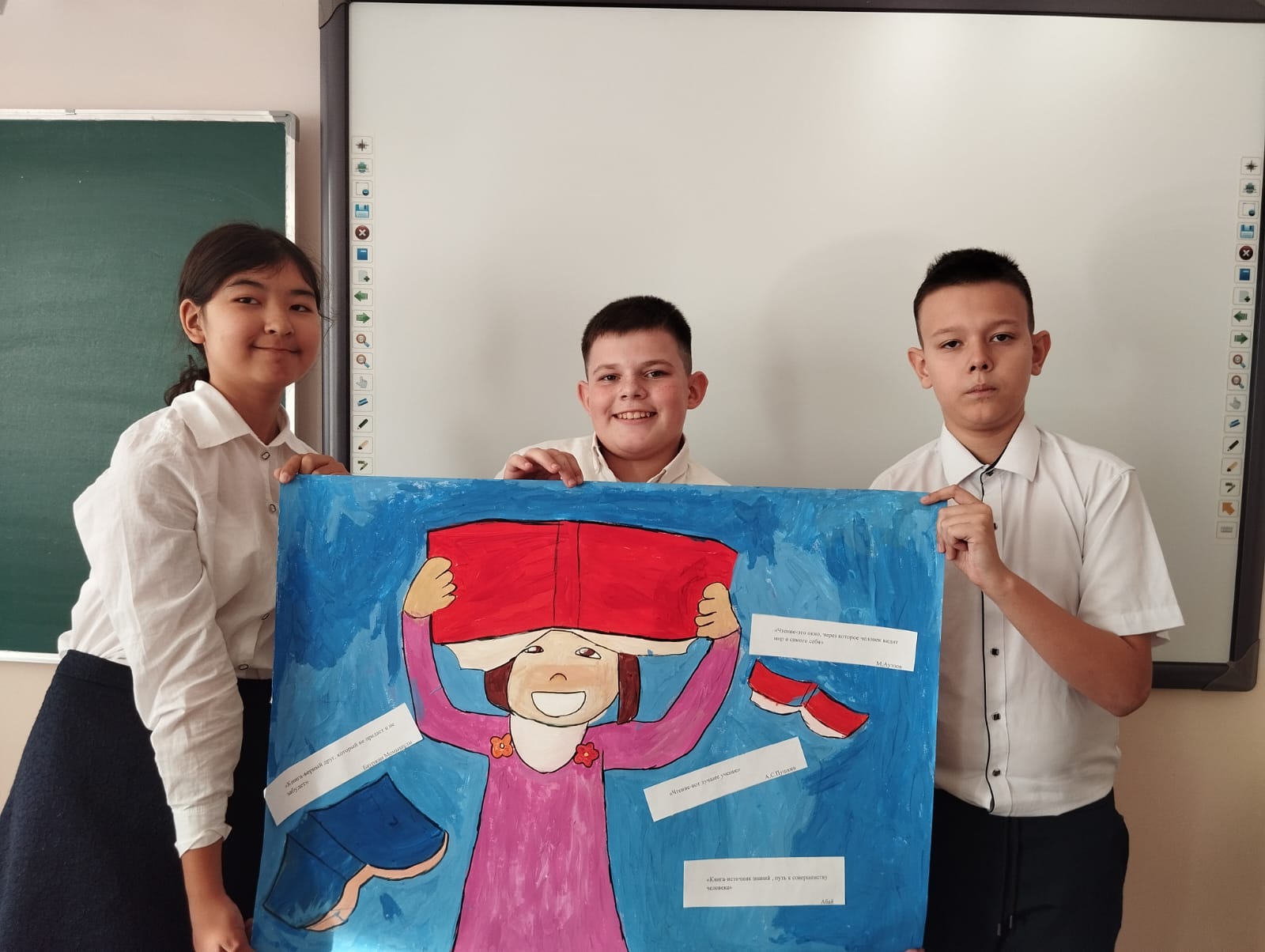 «Жас оқырман» жобасы аясында «Атамекен сиқырлы елінің аңыздары» кітабы бойынша танымдық квиз-байқау өтті. 5 «а», 5 «б», 5 «в» сыныптарының оқушылары кітап беттерімен саяхат жасап, таулар, жұлдыздар, жануарлар мен туған өлке қаһармандары туралы таңғажайып аңыздармен танысты. Викторина барысында қатысушылар жұмбақтар шешіп, сұрақтарға жауап беріп, аңыздарды тауып, өз білімдерін тексерді. Ең белсенді қатысушылар – Колесниченко Нелли мен Ильсуров Санжар, олар сұрақтарға белсенді жауап беріп отырды.