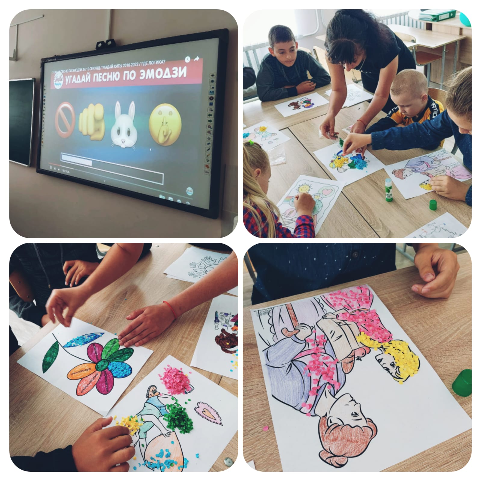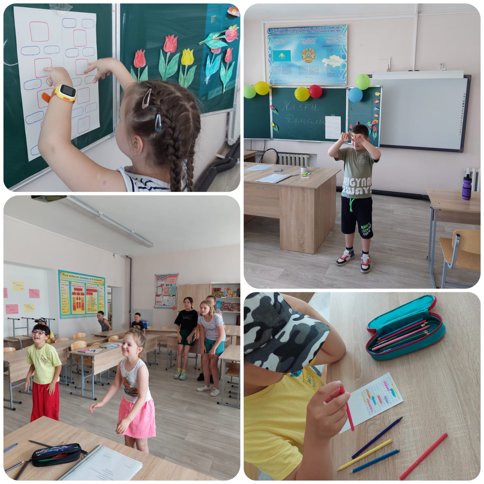 Оқушылар қызықты тапсырмалар орындады,атап айтқанда би жарысы,ән жарысы,суреттерден коллаж құрастыру,қағаз қиындыларымен суретті әрлеу,сөзжұмбақ,пазл. Бағыт арқылы оқушылар ұйымшылдықты,татулықты сақтап,өзара қарым-қатынасқа түсті. Ойынның нәтижесінде оқушылар барлық тапсырманы толық орындады және тәттілерге ие болды.