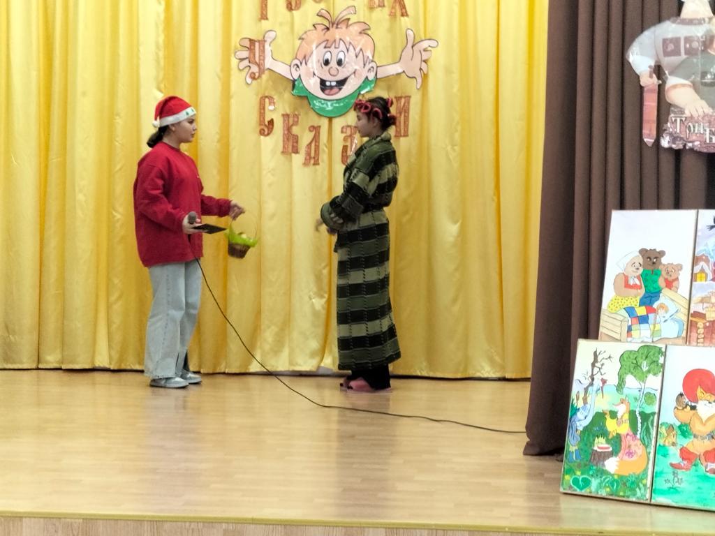 Участниками театрального кружка "Зазеркалье" 8 декабря 2023 года показали представление «В гостях у сказки» для начальных классов (охват 200 обучающихся).