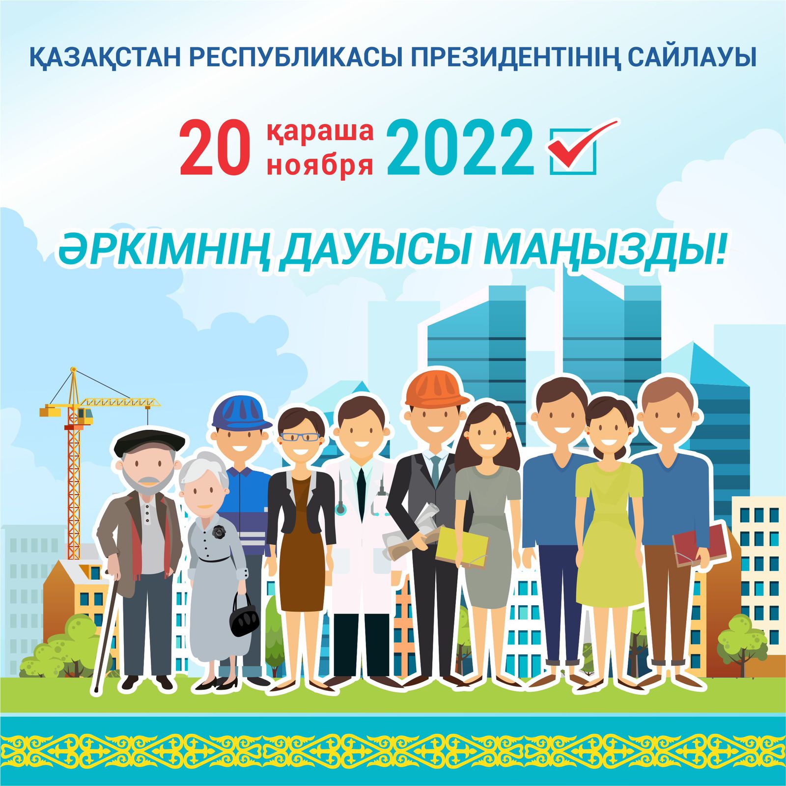 Внеочередные выборы Президента Республики Казахстан - это очередной этап на пути политических и социально-экономических преобразований в стране. Каждый гражданин имеет возможность поучаствовать в этом процессе. Важен голос каждого!