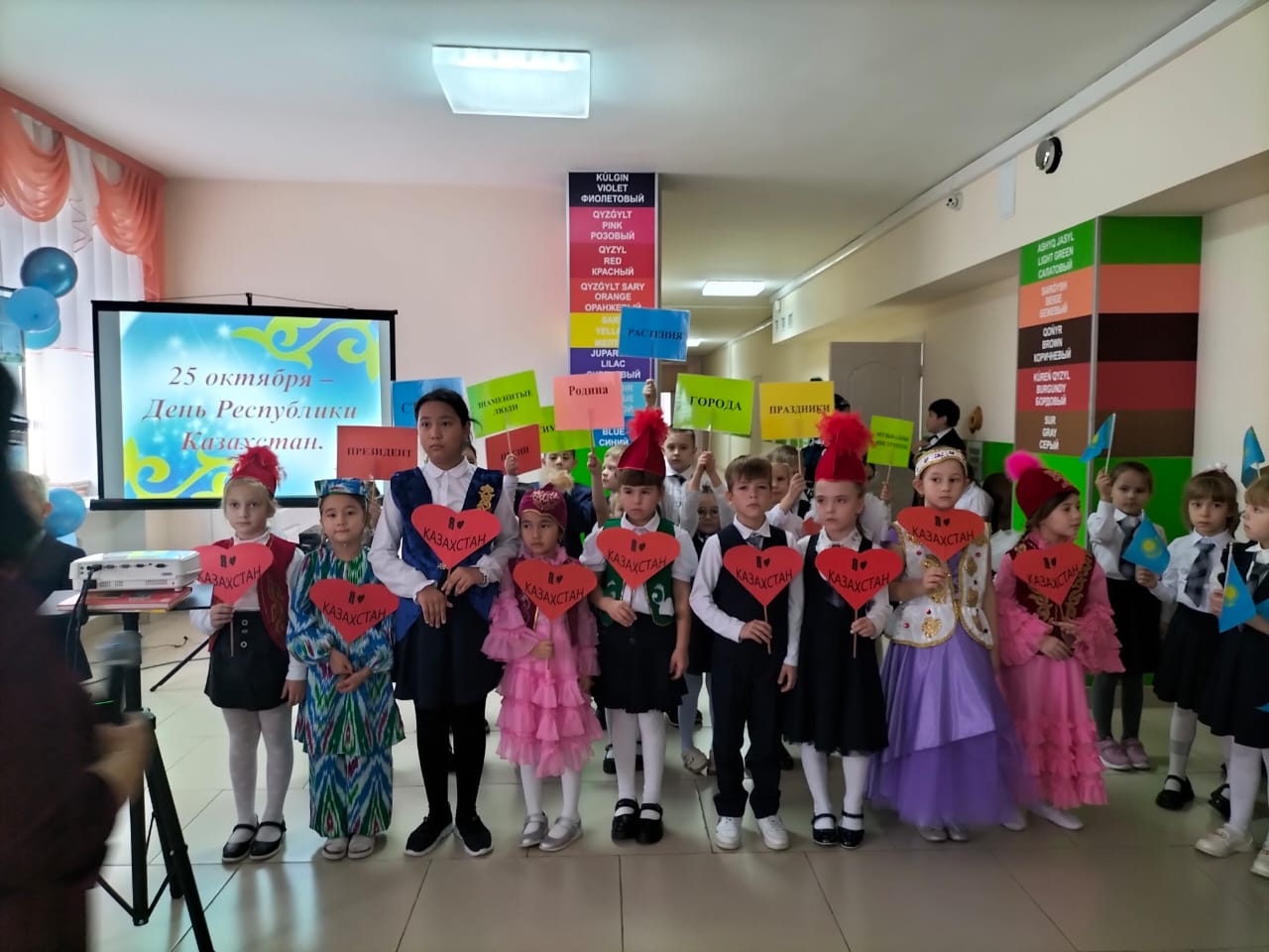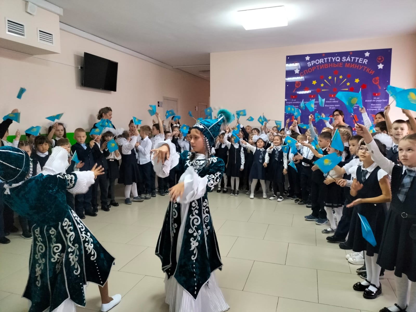 Бүгін іс-шара жоспарына сәйкес мектепте Қазақстан Республикасы күніне орай «Біз тату және берік отбасының балаларымыз» атты бастауыш сынып оқушылары арасында жалпы мектепішілік іс-шара өтті!