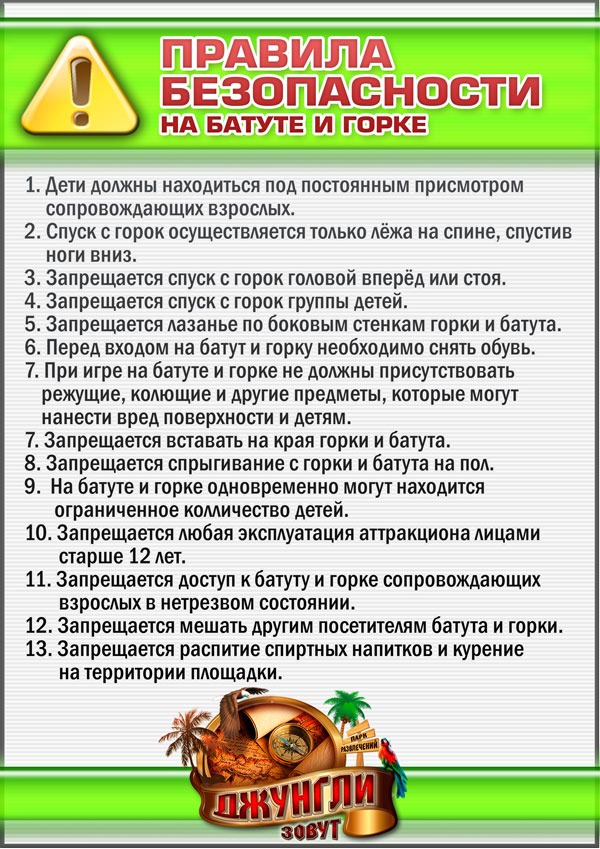 5️⃣Запрещено во время движения аттракционов спрыгивать/сходить с них, необходимо подождать полную остановку качелей, каруселей и т.п.