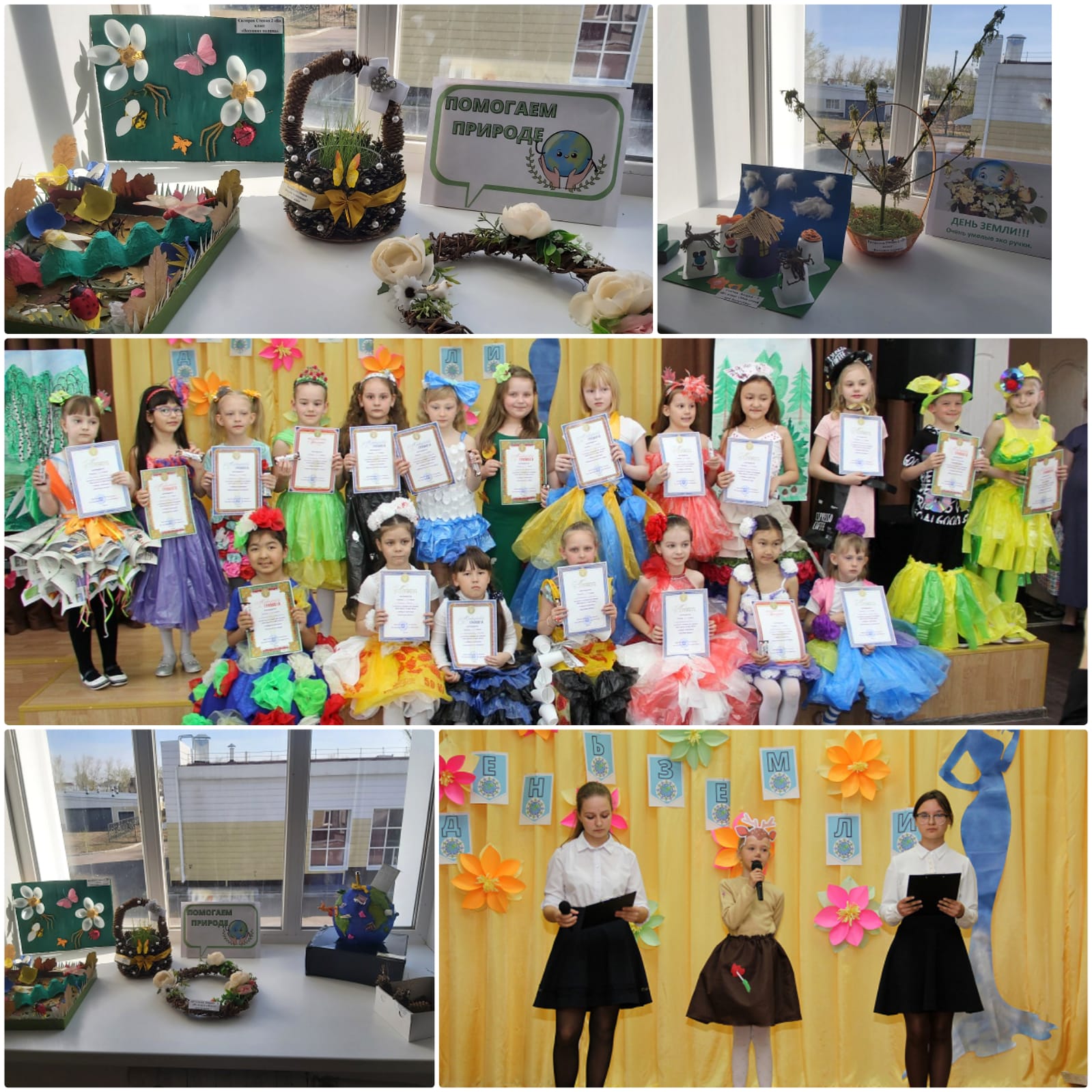 Главной задачей мероприятия было привлечь внимание учащихся к защите природы, формированию у детей чувства сопереживания всему живому и представления о том, что Землю нужно беречь. Предварительно был объявлен конкурс поделок для мальчиков из природного и бросового материала "Весеннее вдохновение" и конкурс нарядов из природного и бросового материала для девочек "Мисс Весна". В день мероприятия состоялись выставка работ и дефиле, в результате все участники были отмечены грамотами и сладкими призами.
