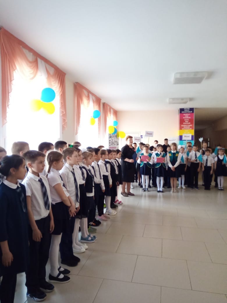 Учащиеся 4 "Б"класса провели торжественную линейку , посвященную Дню Единства народов Казахстана, для учащихся 3-4 классов. Ответственный учитель Агапова Н.Н.