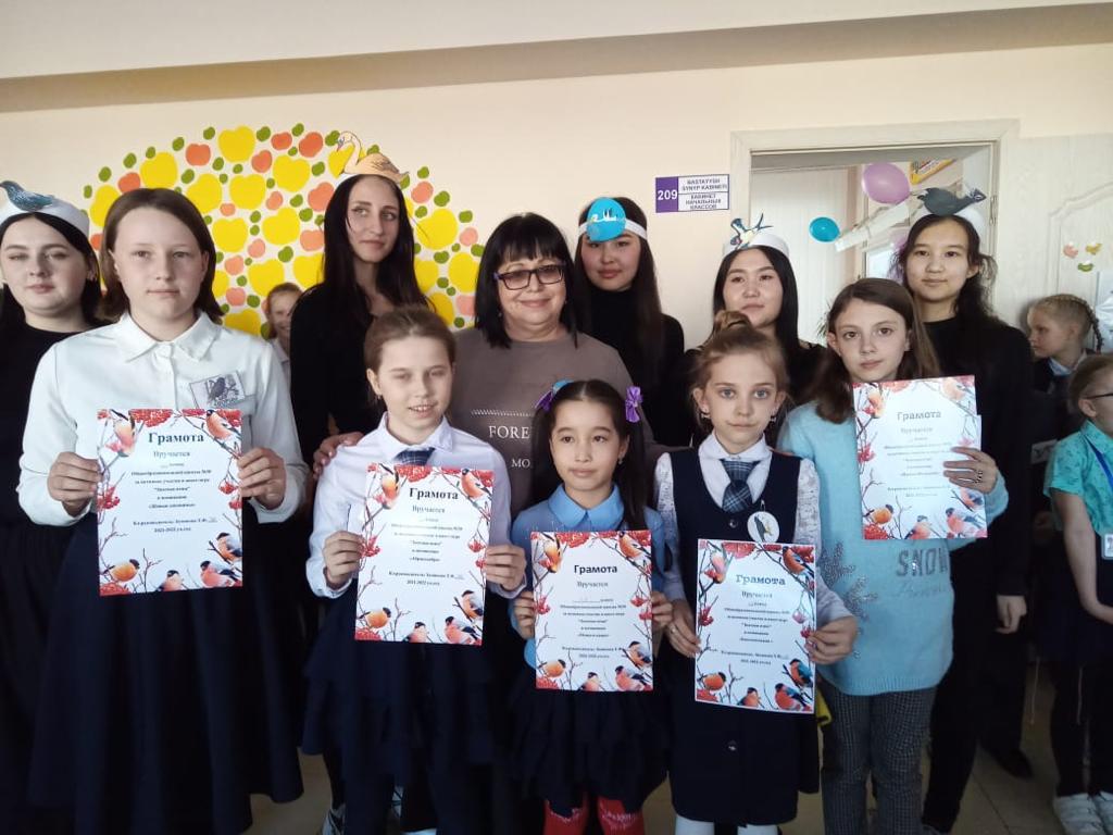 Ученики начальных классов приняли активное участие в городском конкурсе "Здравствуйте пернатые друзья", посвященного всемирному дню птиц. Ребята вместе со своими родителями изготовляли поделки птиц Казахстана. Результаты порадовали всех.